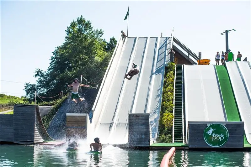 Base de Pop es un lugar de agua deportes situado en el lago de Guiche, en el País Vasco, a 35 minutos de Ondres y Tarnos en coche. Usted puede disfrutar del lago con sus hijos (acceso a la playa de manera libre) y a las atracciones acuaticas : toboganes para todos los niveles (boyas…). Stand Up Paddle, kayaks, barco. Snack bar.