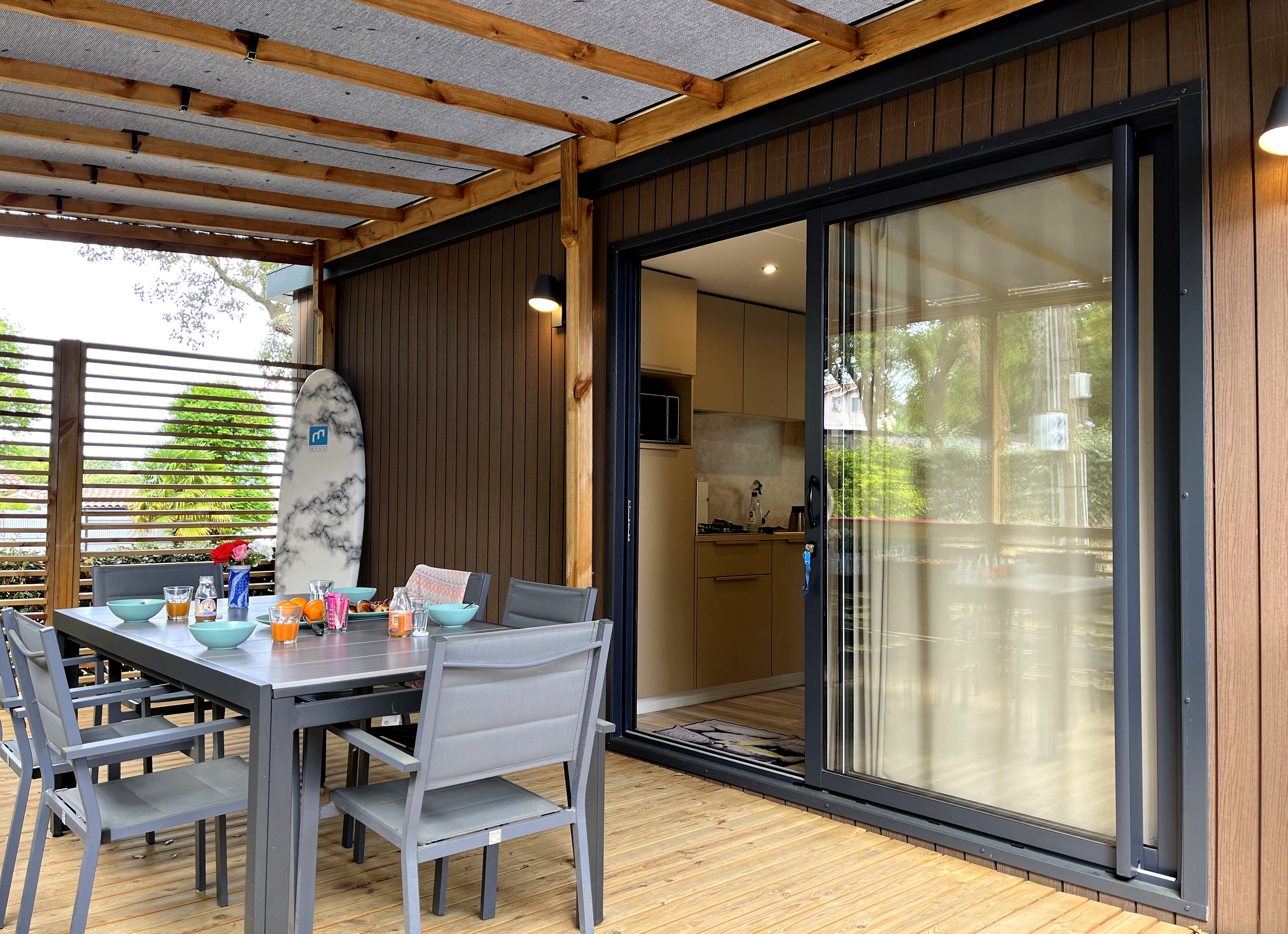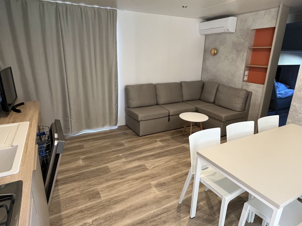 Camping familial situé à 2,5 kms de l’océan. Location de mobil homes, chalets et d’emplacements tentes et camping cars. Le camping dispose d’une aire de jeux, d’une piscine et d’une pataugeoire, terrain de pétanque, barbecues communs et appareils de fitness. Dépôt de pain et viennoiseries et vente de boissons.