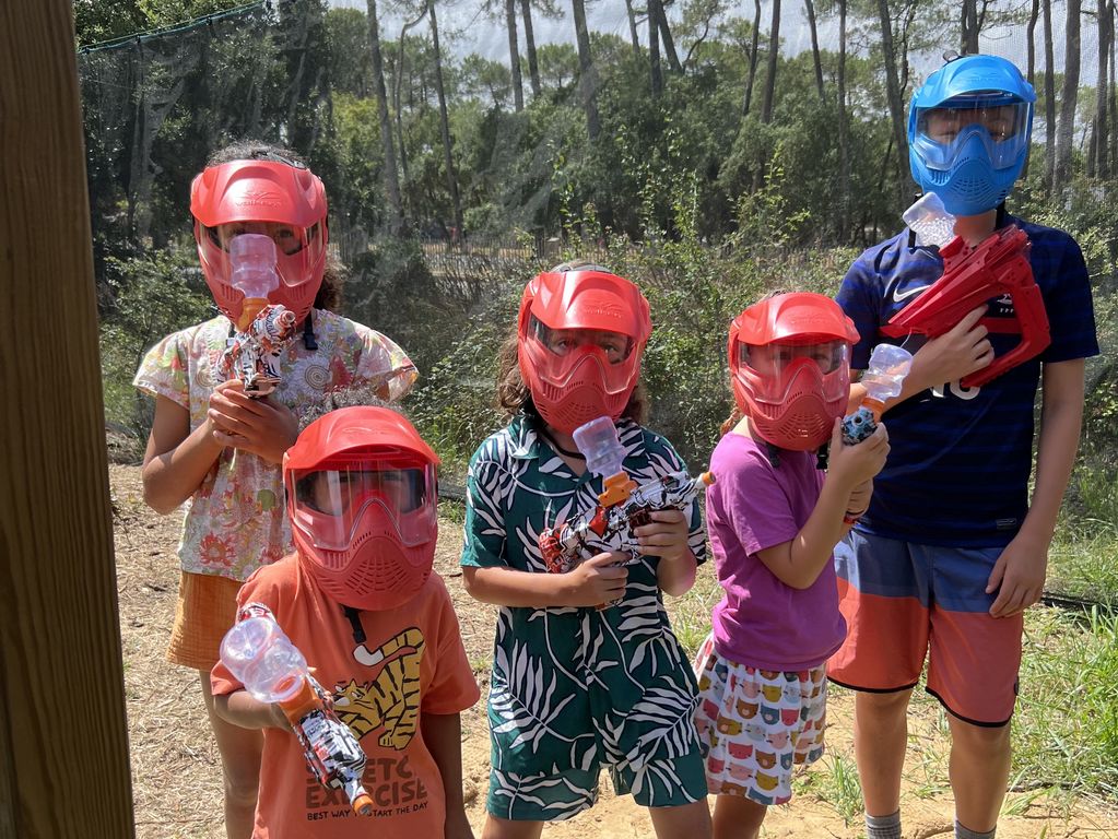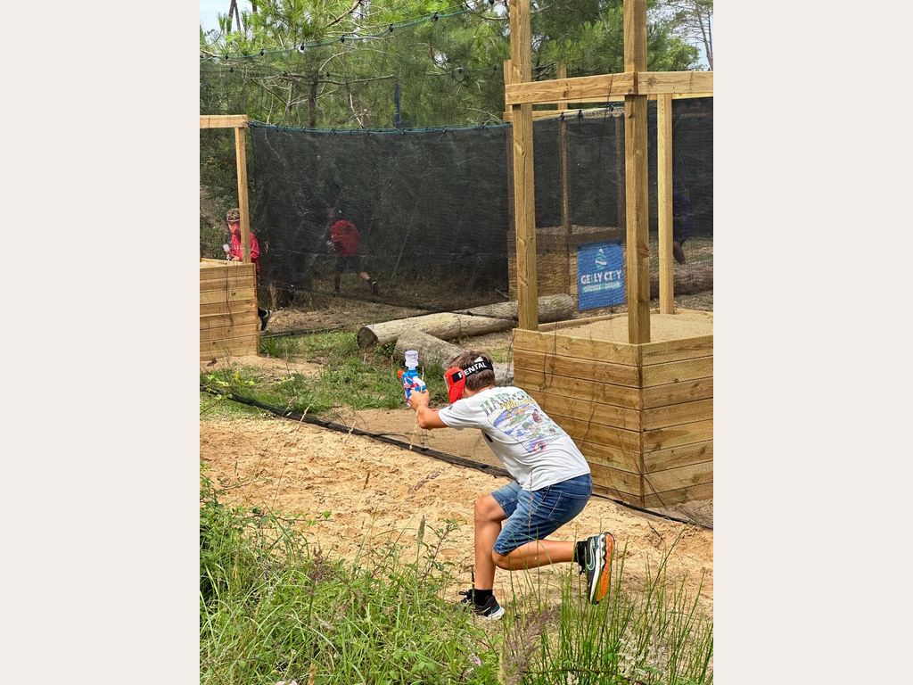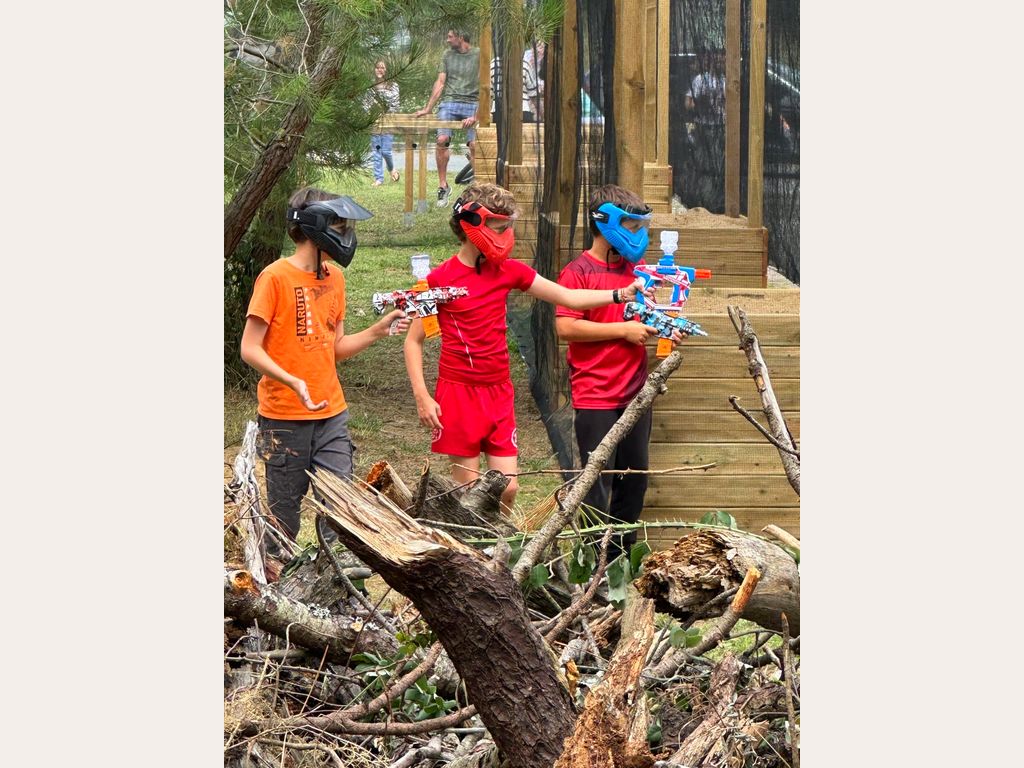 Un jeu d’action fun qui se pratique avec des lanceurs de billes de gel d’eau ultras légers. Le terrain de jeu se situe à quelques mètres de l’océan en plein cœur de la forêt landaise. Les billes de gel d’eau ne tachent pas et ne mouillent pas !!! Vous jouez avec la tenue de votre choix (chaussures pleines vivement conseillées). Similaire au jeu de nerf ou de paintball en beaucoup plus soft pour le plaisir de tous.
